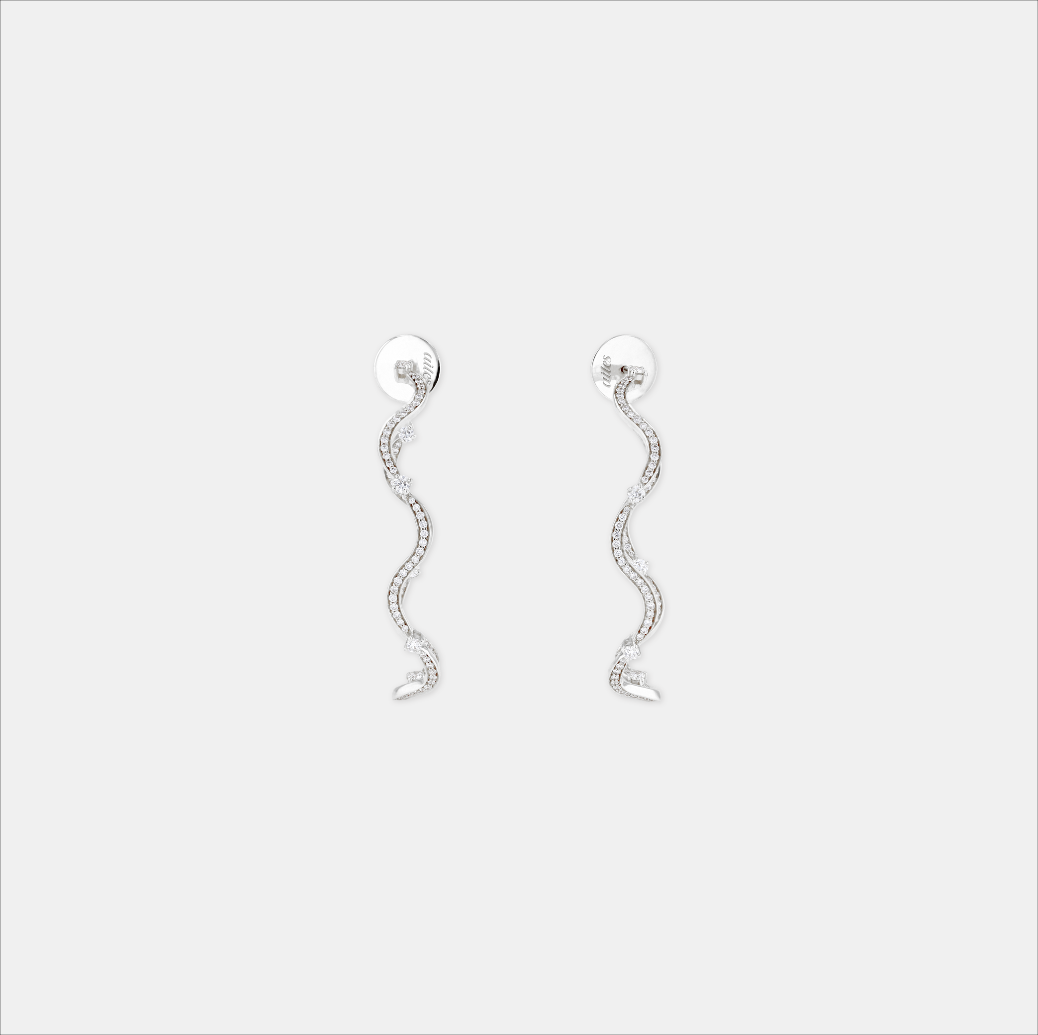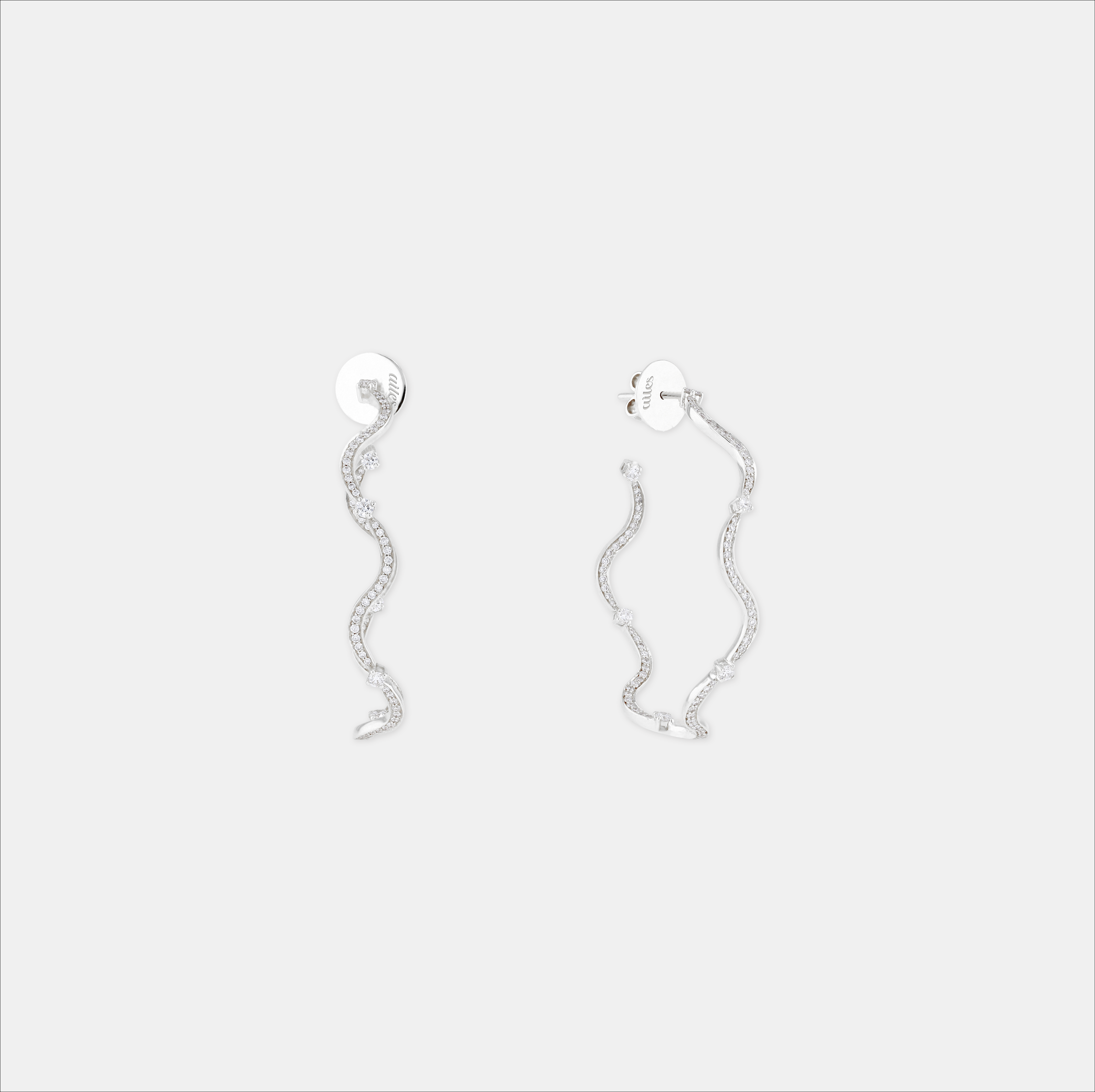 Sculpted in undulating curves, the Large Wave Hoops capture the motion of light and water in a continuous flow. Crafted in 18K yellow or white gold and set with 1.25 carats of VS diamonds tracing their entire silhouette, these hoops bring effortless movement and radiance to any look.