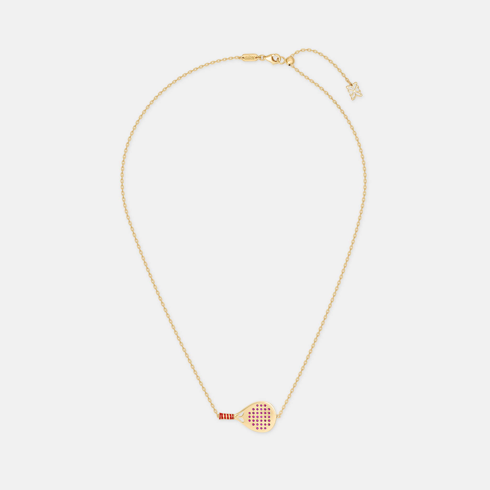 Celebrating the thrill of the game, this pendant takes the form of a padel racket, adorned with VS diamonds across the net and finished with vibrant enamel on the grip. Crafted in 18K gold, it blends playful detail with an elegant, sporty charm.