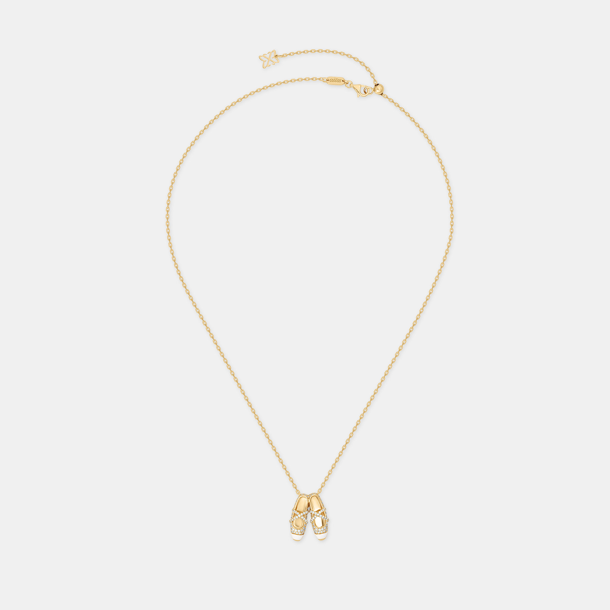 A charming nod to studio style, this pendant takes the form of a pair of grip socks, detailed with pavé-set diamonds along the straps and soft enamel tips. Crafted in 18K gold, it’s a playful keepsake for Pilates lovers and an elegant everyday piece.
